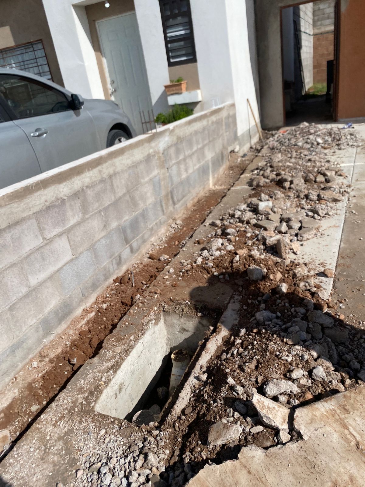 Iniciamos el proyecto realizando el corte y la demolición del concreto existente para preparar el área donde se construirá la nueva barda.